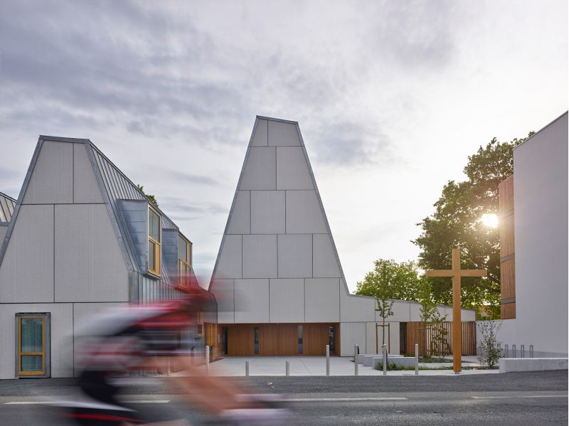 Architecture: Magnum Architectes & UrbanistesColor: LightPattern: Designer's own Repeating patternPrefabrication: NaulletAddress: 118 Rue Ernest Sauvestre, Rezé, FranceType: Religious BuildingYear: 2015Photo: S. Chalmeau