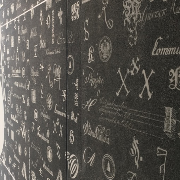 Als Gewinner des finnischen Betonbauwerks des Jahres 2009 beeindruckt diese schwarze Fassade mit Inschriften aus historischen Archiven – von bäuerlichen Lesezeichen über königliche Briefe bis hin zu modernen digitalen Symbolen.