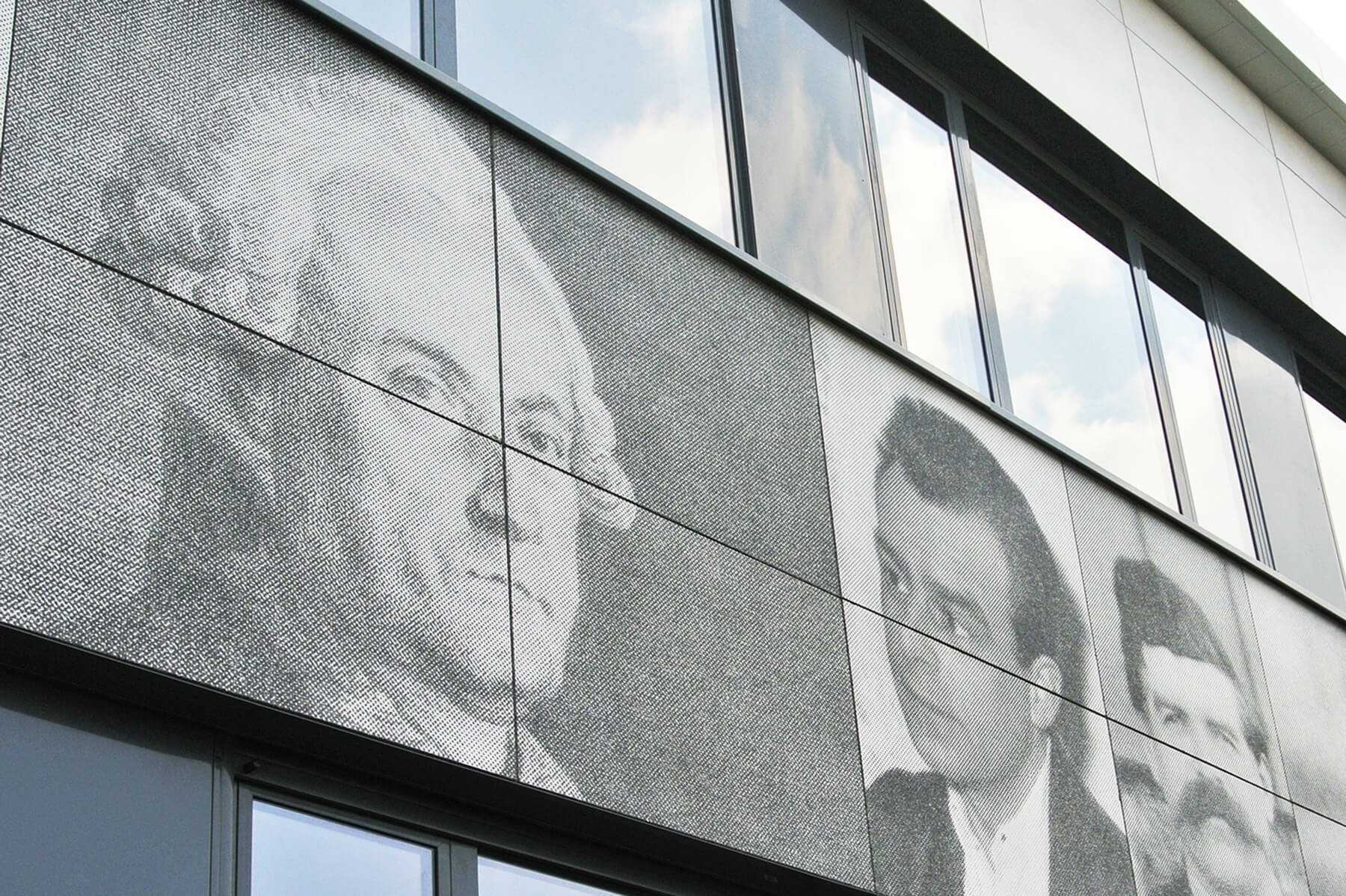 The design was realised by rasterising photos of the famous artists and scientists and then transferring the images onto the surface of the concrete using the paper technique patented by Graphic Concrete Oy.