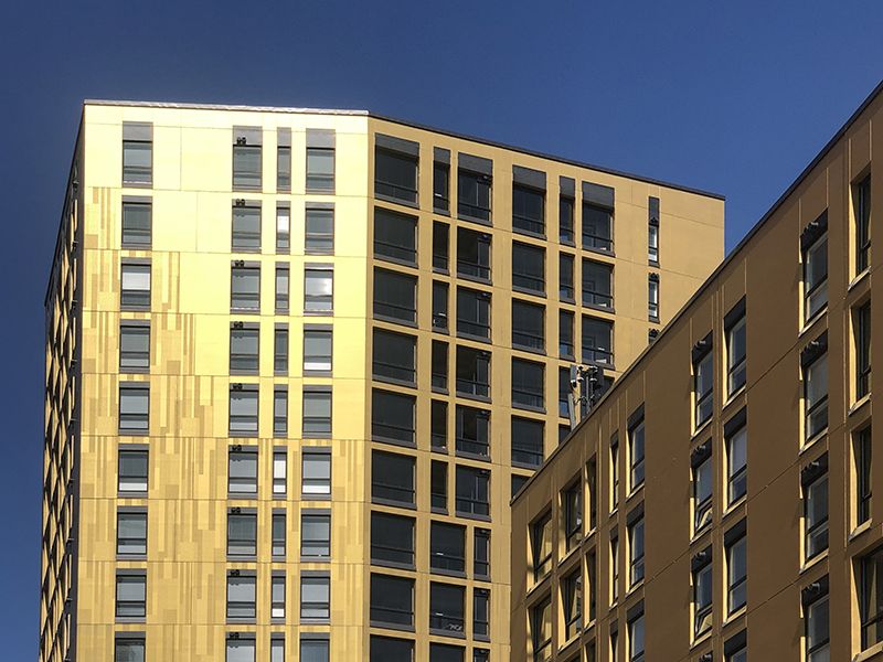 We are still eager to experiment developing innovations. Delfiinikortteli is an extraordinary reference that precast elements are used in high-rise buildings using stained gold, silver, and bronze colors on the concrete surface.