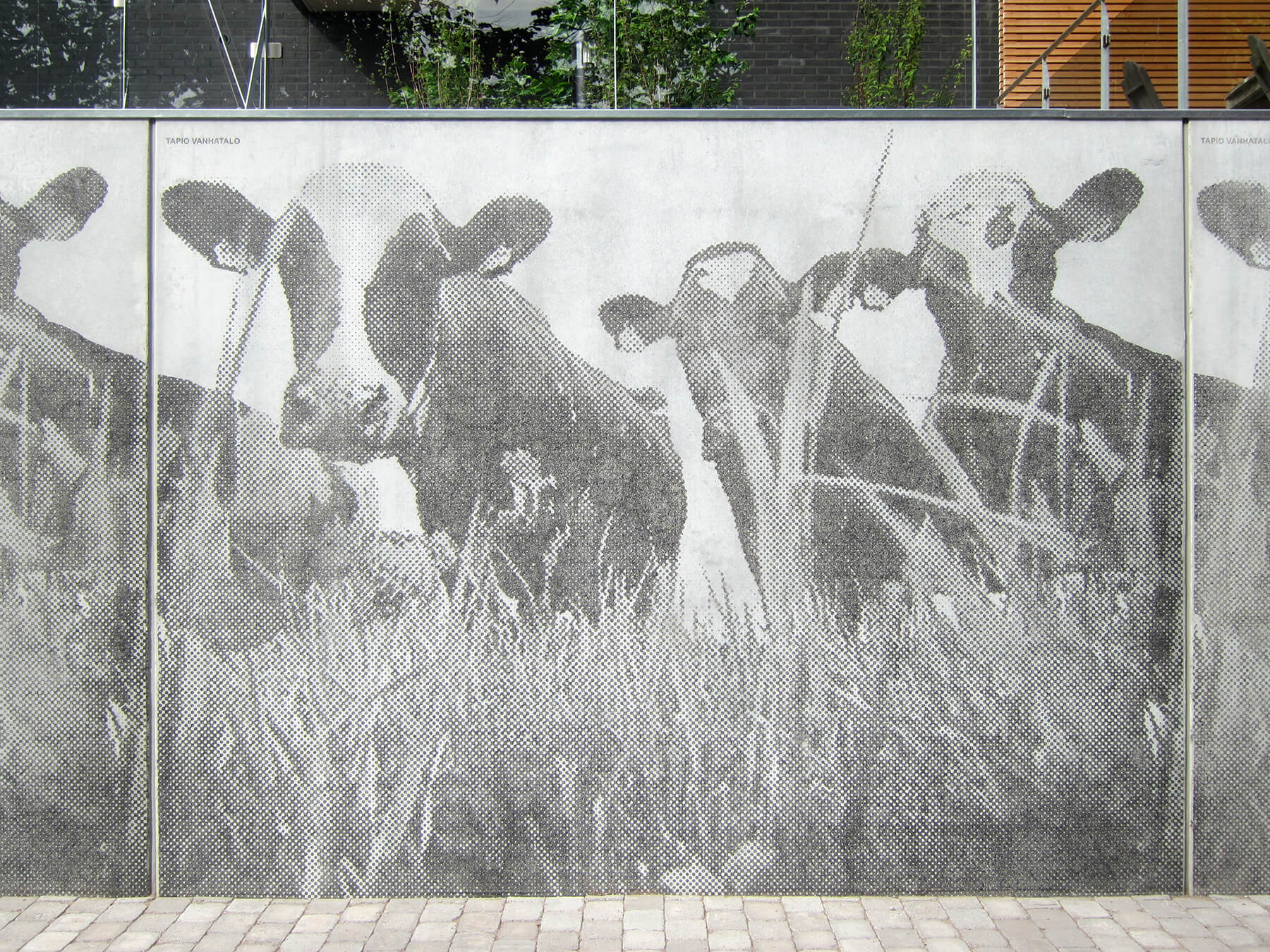 The residential building Helsingin Tervapääskynen designed by architects Helamaa&Pulkkinen Oy has been awarded the Kestävä Kivitalo 2012 prize for durable stone construction. The building also features Graphic Concrete used in the building’s retaining wall. The cows depicted on the retaining wall hark back to the veterinary college and its stables which used to stand on the site.