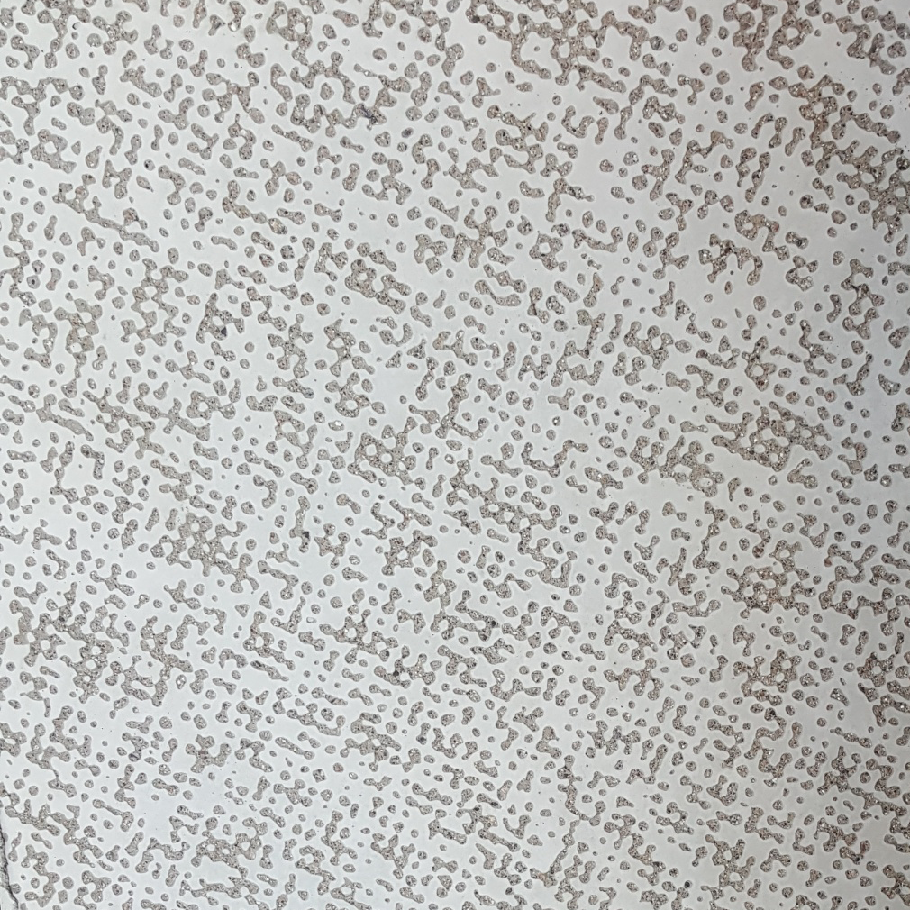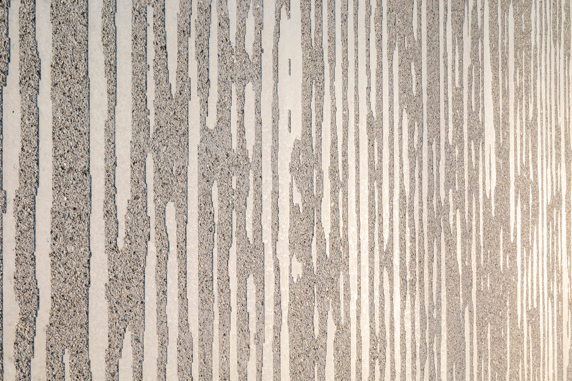 Muista, että graafisen betonin kuvio muodostuu kahden eri pinnan välisestä kontrastista - sileän sementtipinnan (l. puhdasvalupinta/muottipinta) ja hienopesupinnan (l. pinta, jossa betonin kiviaines on näkyvissä). Tämä tarkoittaa sitä, että graafisen betonin kuviossa voi olla vain kahta eri väriä: 100% mustia ja 100% valkoisia alueita.