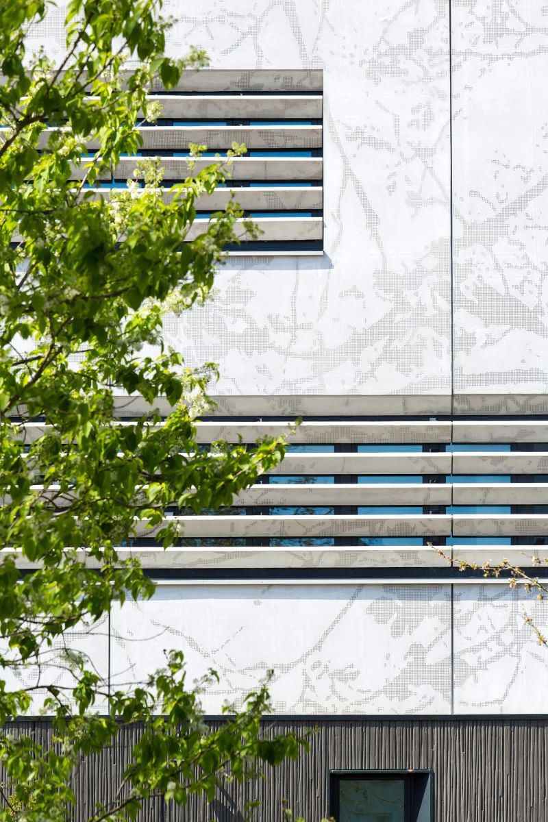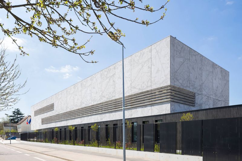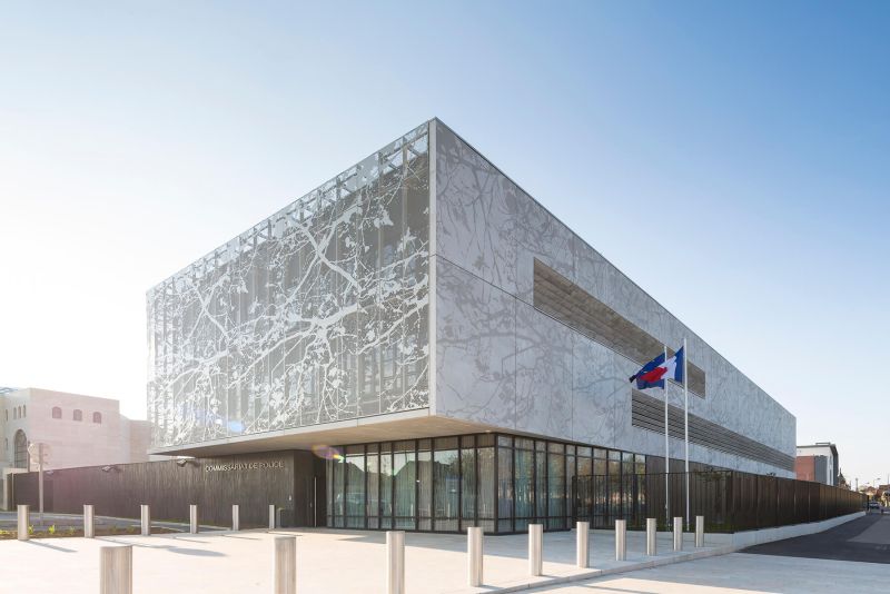 The new police station that was introduced in 2016 is designed by Ameller Dubois Architects. The building is topped with a two-storey-box, slightly offset from its base, and entirely adorned with an abstract decorative pattern in Graphic Concrete and laser iron engraving. The building stands at the heart of a diverse and evolving urban fabric, combining commercial buildings, places of worship, collective housing and pavilions.
