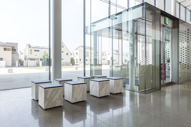 At the Ota Civic Hall you can find very elegant minimalistic Graphic Concrete bollards and stools, outside and inside the building. The pattern is one of our all-time favorites; GCCollection Grass.