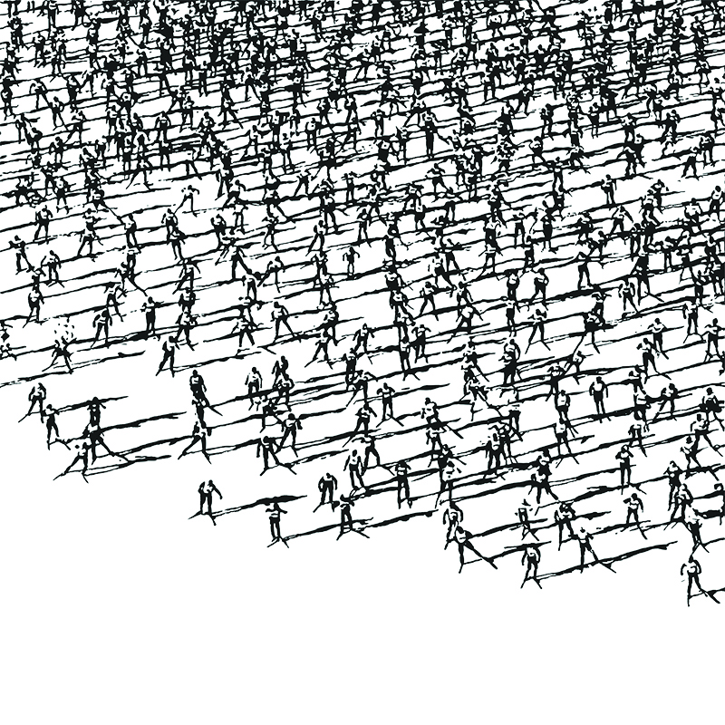 Tuominen describes that the only requirement for the design was the connection to skiing. After many initial sketches Tuominen’s image, based on a bird's-eye view photo of the start of a ski race, was selected. At first glance, the work appears as an abstract pattern, but when viewed upon more closely, it reveals dozens of skiers and their shadows moving forward as a massive group.